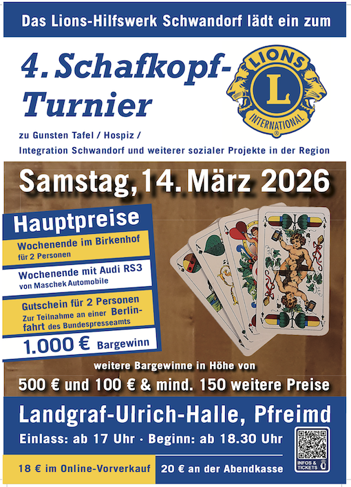 Zudem große Verlosung mit weiteren tollen Preisen, u.a. halbe Sau, 50-Zoll-TV, etc. Einlass ab 13.00 Uhr
