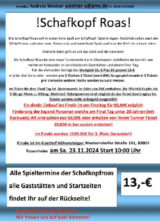 Die zweite schafkopfroas startet im September mit 39 Vorrunden Terminen und einem Final Tag am 23.11.2024